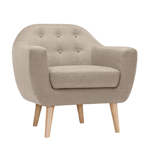Matière : housse en lin et polyester. Pieds en bois.
