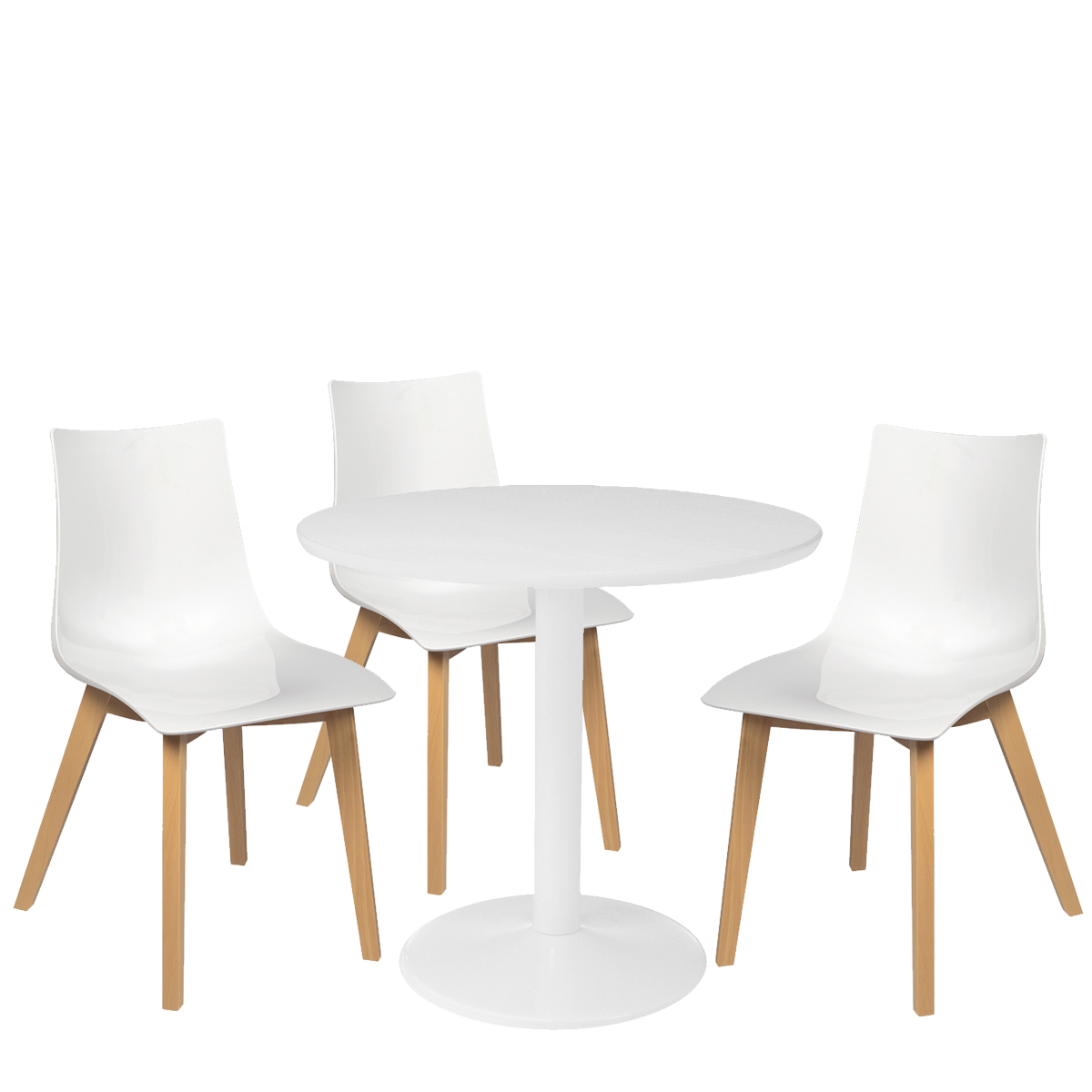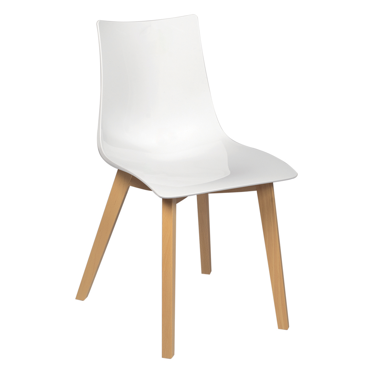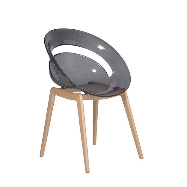 Matière : assise en polycarbonate laquée et pieds aspect bois naturel.
