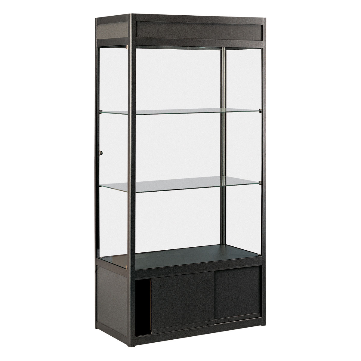 Cette grande vitrine possède 2 étagères réglables (sur demande avant livraison), ferme à clé et possède un système d'éclairage.
