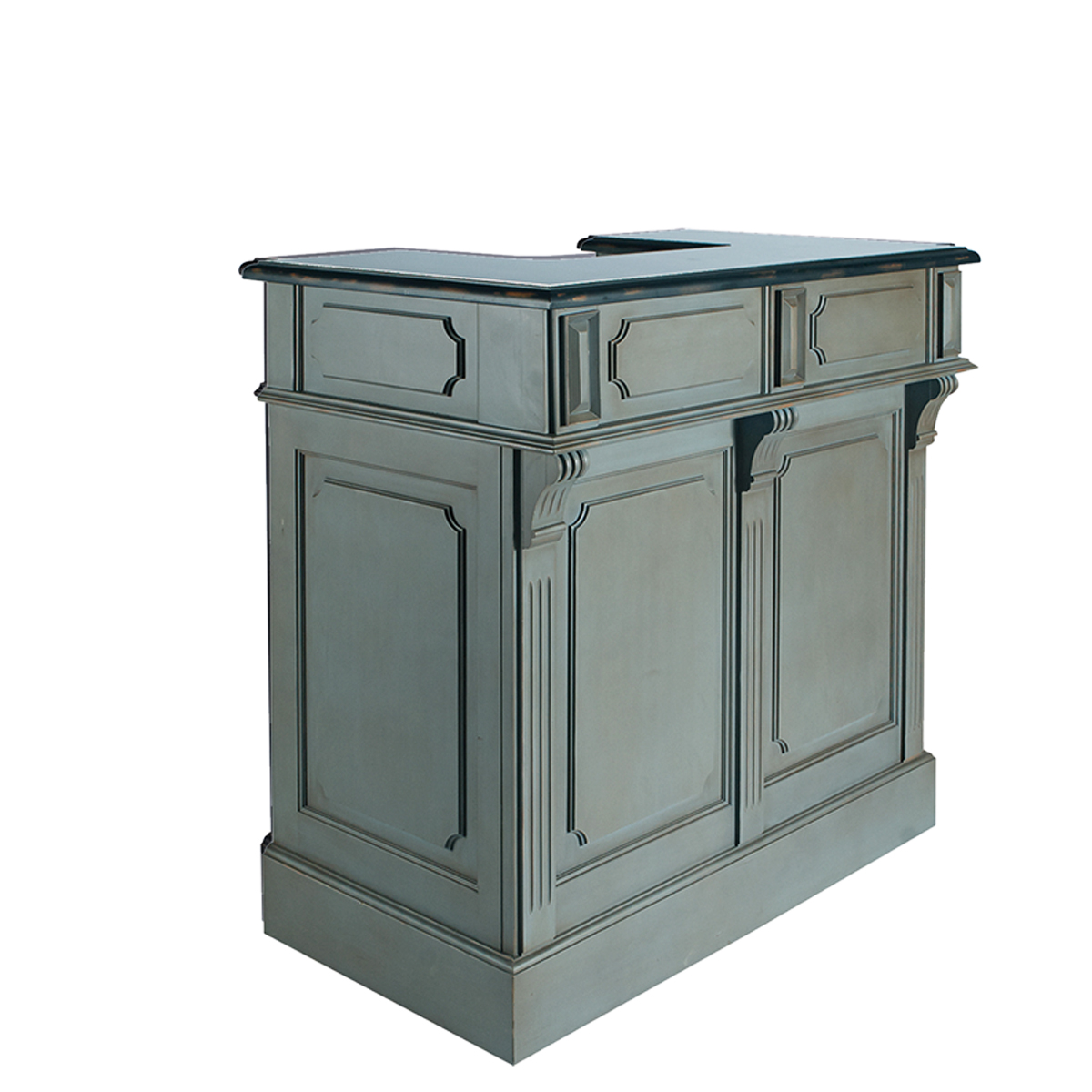 Le bar RETRO est un bar en bois massif peint, qui a du caractère. Vous avez même la possibilité d'intégrer un réfrigérateur 140L ou une Cave à vin. ATTENTION, cave à vin non fournie. Il comprend 2 rangements dont 1 placard, 2 tiroirs, une étagère et un repose-pied.